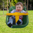 Let toddlers join in on the big kids swing set with this Green & Yellow Baby Seat attachment. This seat is safe and more comfortable for toddlers with soft ropes, seat belt, and a T-Bar. Comes with everything you need to attach to one of our timber or metal swing sets.