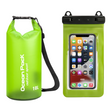Light Green 10L PVC Waterproof Swimming Bag Bonus with Waterproof Phone Pouch - Roll-Top Floating Dry Gear Bags for Beach, Kayaking & Outdoor Sports