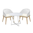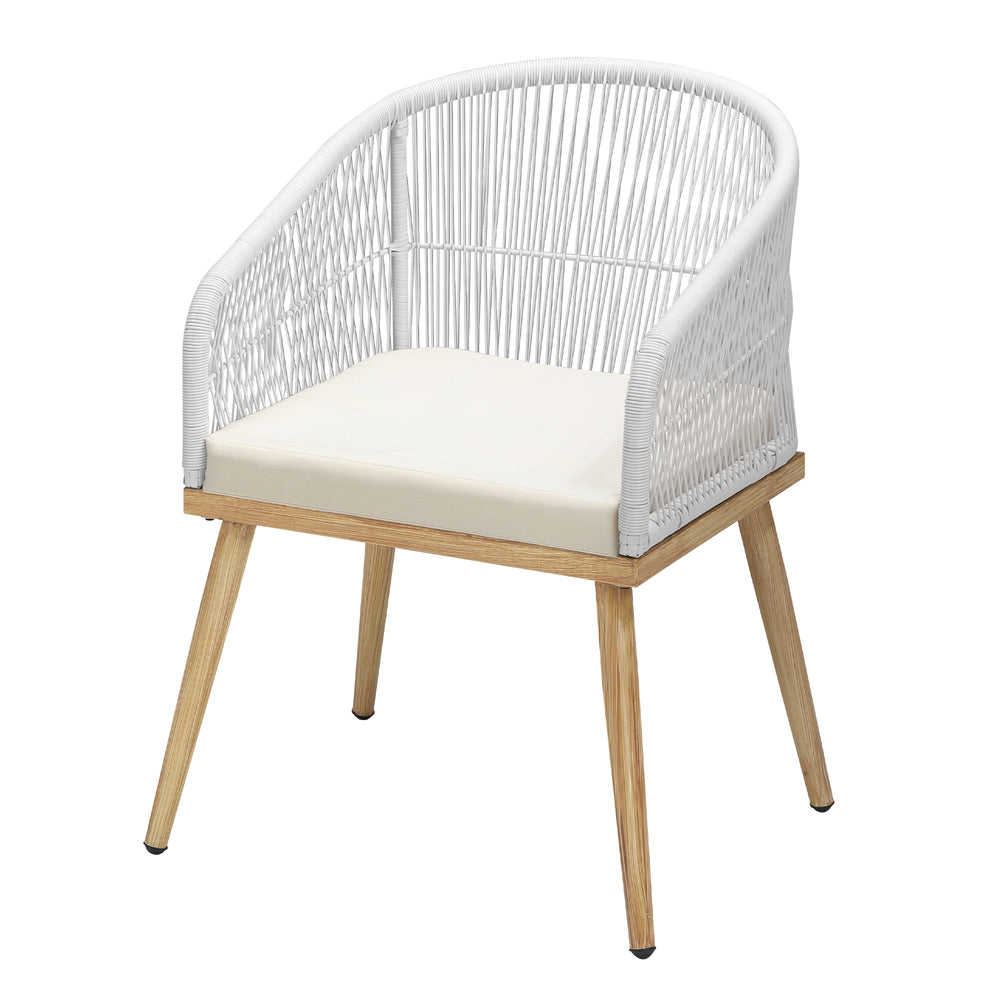 The chairs are designed with your comfort in mind. Comfort is paramount in our Outdoor Armchair Set. Each chair is thoughtfully designed with a generous seat and backrest, providing optimal support and relaxation. Sink into the plush cushions that come with the chairs, made from water-resistant and quick-drying fabric, ensuring both comfort and convenience.