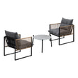 Livsip 3PCS Outdoor Patio Set Grey 50cm Coffee Table Rattan Chairs