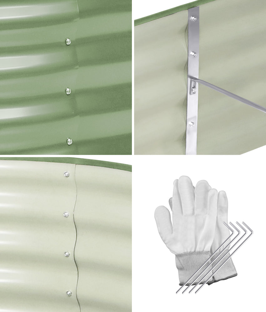 Made from quality galvanised steel, the garden bed is durable and rust-free. The epoxy paint finish is also given a non-toxic coloured steel surface treatment to withstand the weather elements better and maintain its looks. Plus, it is now upgraded with horizontal tie rods and reinforcement strips to ensure that the elliptical-shaped garden bed is strong and sturdy for long-lasting use.