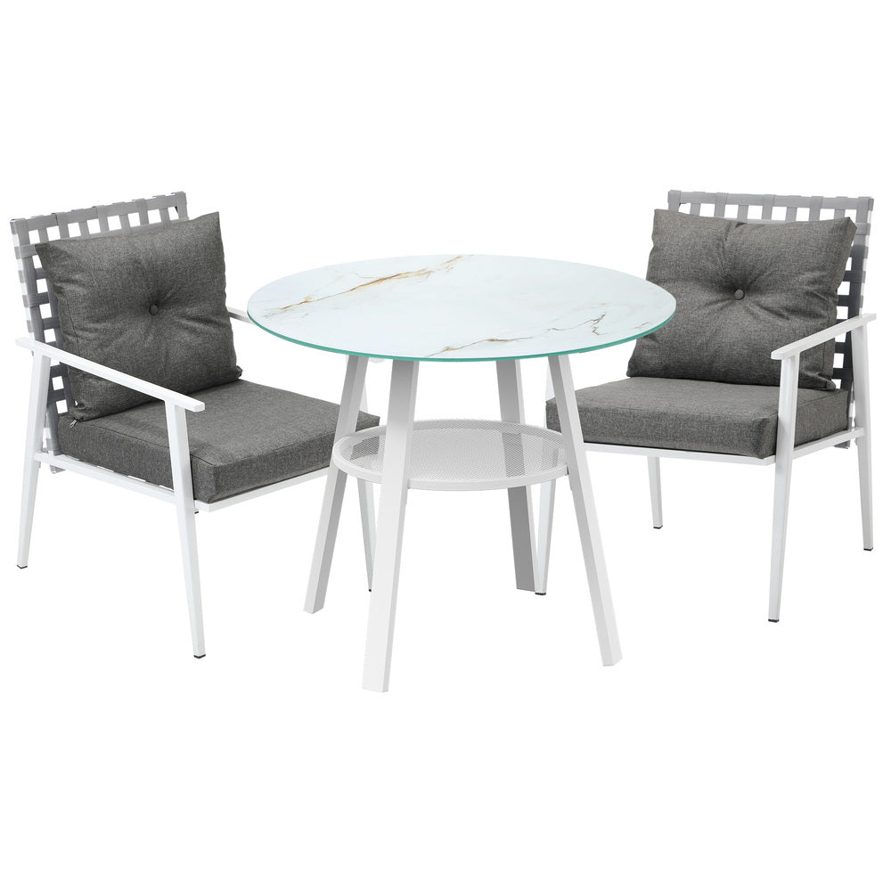 Livsip Outdoor Dining Set 3PCS Marble Table Rattan Chair