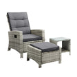 Livsip Recliner Wicker Sun Lounge Set 3PC Grey