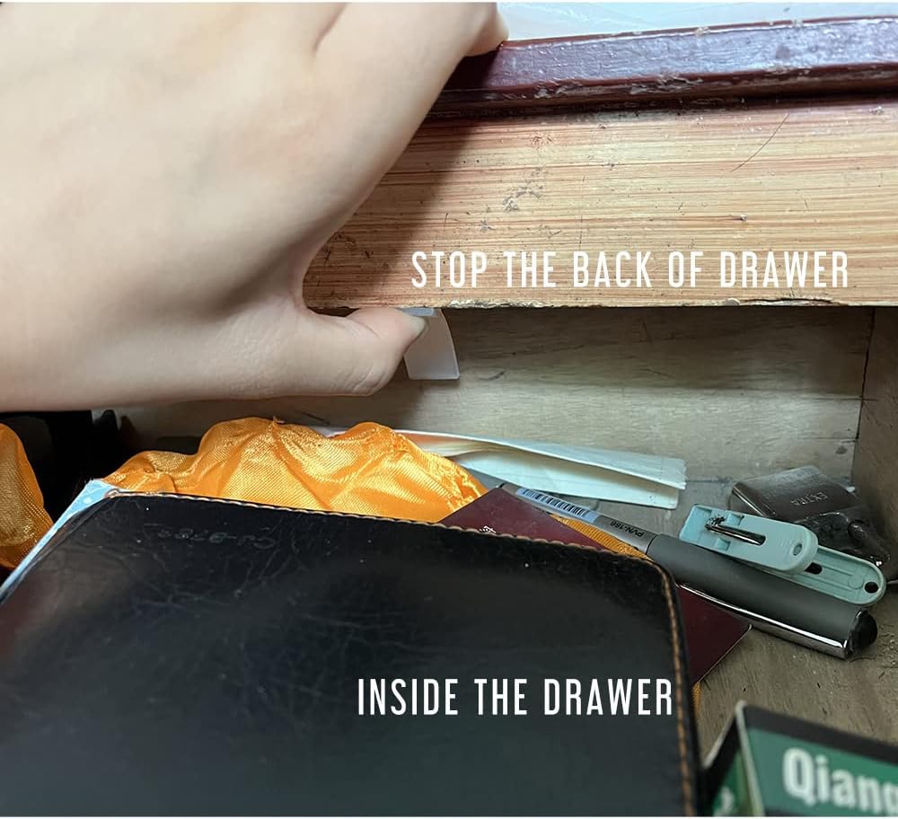 These are hard plastic drawer stops which help you stop the drawer being pulled out, for big drawers, you could screw in more than 1 to get a better effect. Please refer to pictures for easy installation and make sure the end tip is inside the drawer, also there is 1 little part which is promiment, that's upward side.