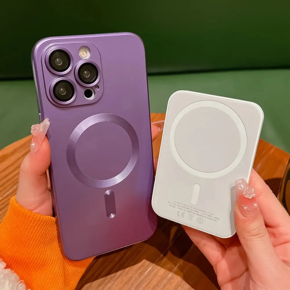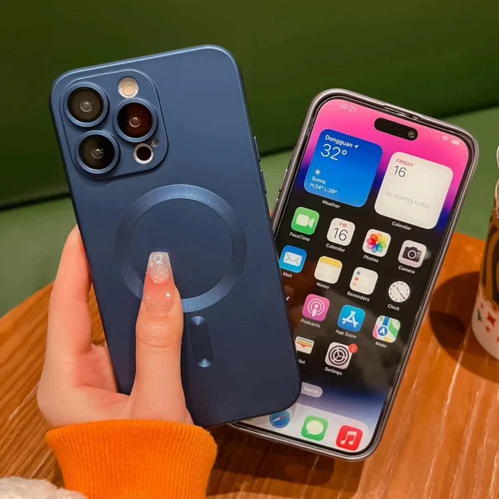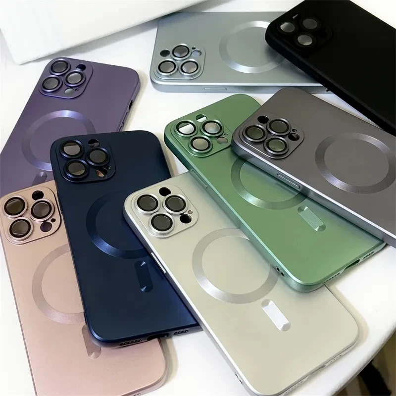 Luxury Magnetic Wireless Charging Matte Case For iPhone 16 15 14 Plus 13 12 11 Pro Max For Magsafe Camera Lens Protector Cover