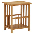 Our magazine table features a simple yet stylish design and adds a touch of rustic charm to your home decor. This magazine rack has been expertly crafted from solid oak wood and MDF, making it durable and functional. Thanks to its compact design, the table takes up very little space and is easy to move around. The sturdy tabletop is ideal for displaying decorative objects, photo frames, or potted plants. It also has one shelf, which is perfect for keeping newspapers and magazines.