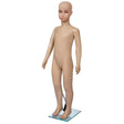This child mannequin can be used to display clothes, wigs, ornaments or shoes in shop windows. The mannequin consists of 4 assembled parts: head, torso with legs, left arm, and right arm. The head and the arms are removable and can be rotated by 360°, and the face can be moved up and down by 60°. The whole child body is made of PE. This material is more durable for use compared to the others like fiberglass. The mannequin is comes complete with a glass base. It is also supported by an aluminum stand at the back to provide more stability.
