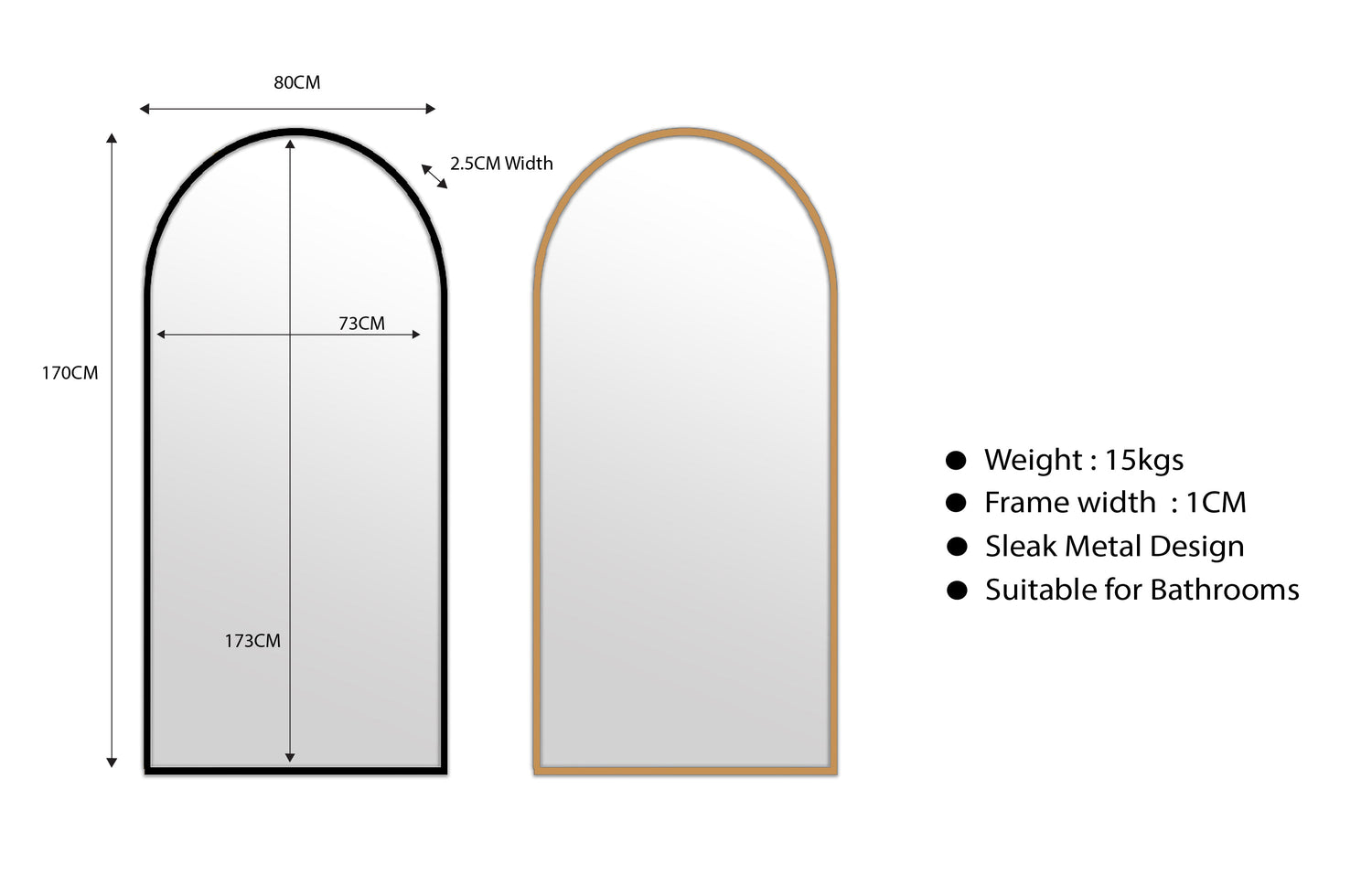 Arched Shape: The mirror's arched shape adds a unique and stylish touch to the overall look of the mirror.