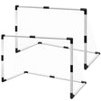 This mini soccer goal set, including 2 pcs, is specially designed for children to have fun or to hold a contest. Thanks to weather-resistant materials, it is durable for years of use. Durable material: The goalposts are made of quality plastic and the net is made of 100% polyester which makes it weather resistant and water resistant.Easy to assemble: Coming complete with tubes and net, the soccer goal set is very easy to assemble. Ground hooks: When placing it outside, you can use the included steel hooks to attach the goal to the ground firmly.