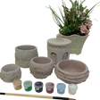 This is a mixed pack of Australian made, hand cast, small, concrete succulent planters. They come in a range of sizes and unique styles that will please any succulent lover. The package comes with some paints and two paint brushes in case you want to paint them and truly make them unique.