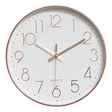 The Modern Wall Clock Silent Non-Ticking Quartz Battery Operated Rose Gold combines timeless elegance with contemporary design. Crafted with a refined rose gold and white colour palette, it features a sleek plastic frame and durable glass cover. Powered by a reliable quartz movement, this non-ticking clock delivers precise timekeeping while maintaining a peaceful atmosphere. Its anti-fog glass face ensures clarity and easy maintenance for any space.