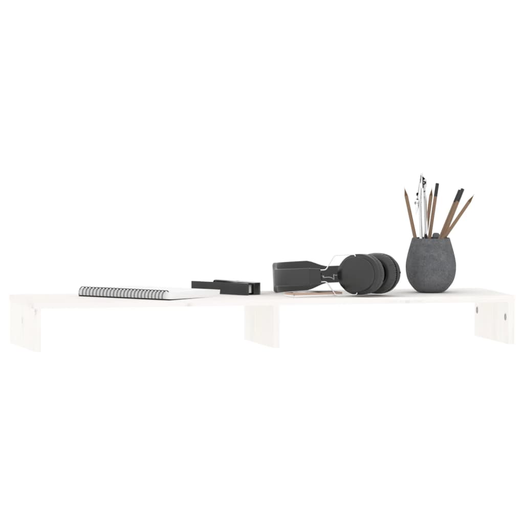 This classic wooden monitor stand featuring a minimalist design adds a beautiful touch to your current living space. Solid pinewood: Solid pine wood is a beautiful natural material. Pine wood has a straight grain, and the knots give the material its signature, rustic look.Stable frame: The wooden frame of this computer stand ensures sturdiness and stability.Storage space: The space under the computer monitor stand can accommodate your keyboard, DVD player, gaming console, streaming device, receivers, media carriers, notebooks, pens, and similar items.Stress-reducing function: This keyboard stand can be used as a riser for your desktop monitor and other multimedia devices. Raising your screen will reduce the strain on your neck and back. Note:Each product comes with an assembly manual in the box for easy assembly.