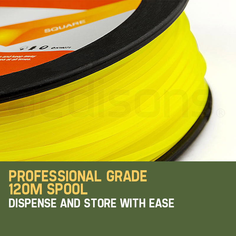 Bright yellow for easy visual accuracy, commercial 2.4mm diameter and universally suited to most trimmers/brush cutter fixed and bump feed heads, accepting of 2.4mm line.