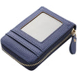 Multi Slot Short Card Holder With Zipper Coin Purse Pu Leather - Blue