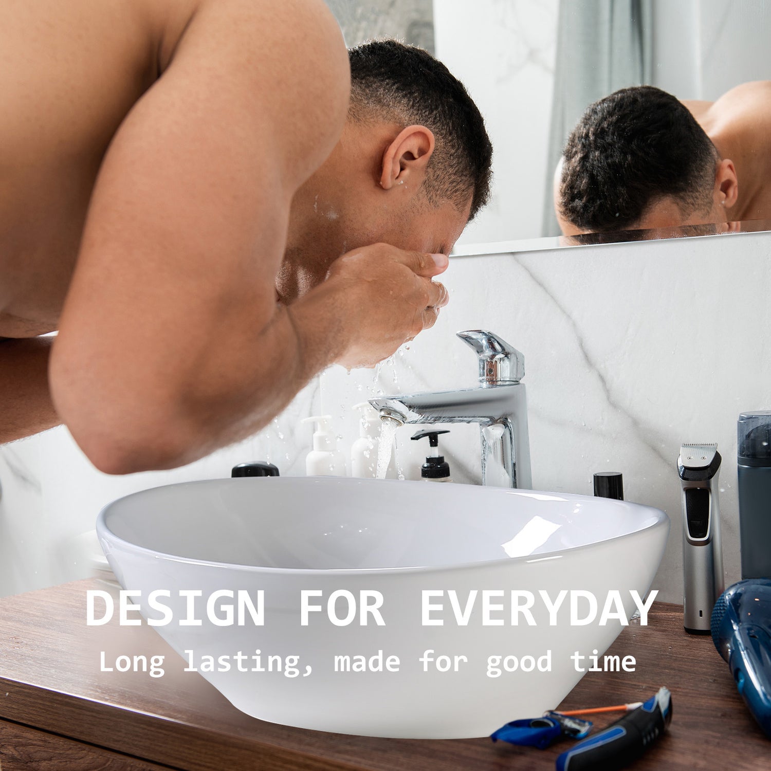 Muriel Ceramic Bathroom Basin Vanity Sink Oval Above Counter Top Mount Bowl 41 x 34 x 14.5cm - White