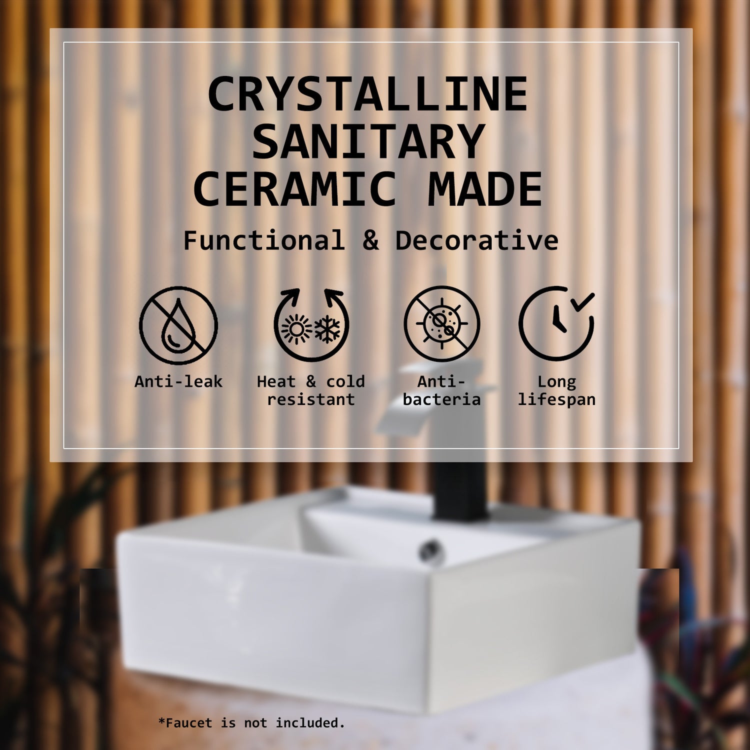 Muriel 42 x 42 x 15cm White Ceramic Bathroom Basin Vanity Sink Square Above Counter Top Mount Bowl