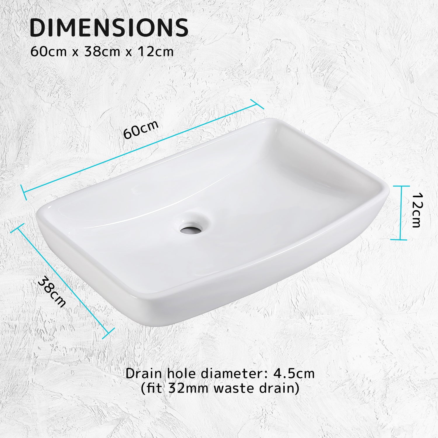 Muriel 60 x 38x 12cm White Ceramic Bathroom Basin Vanity Sink Above Counter Top Mount Bowl