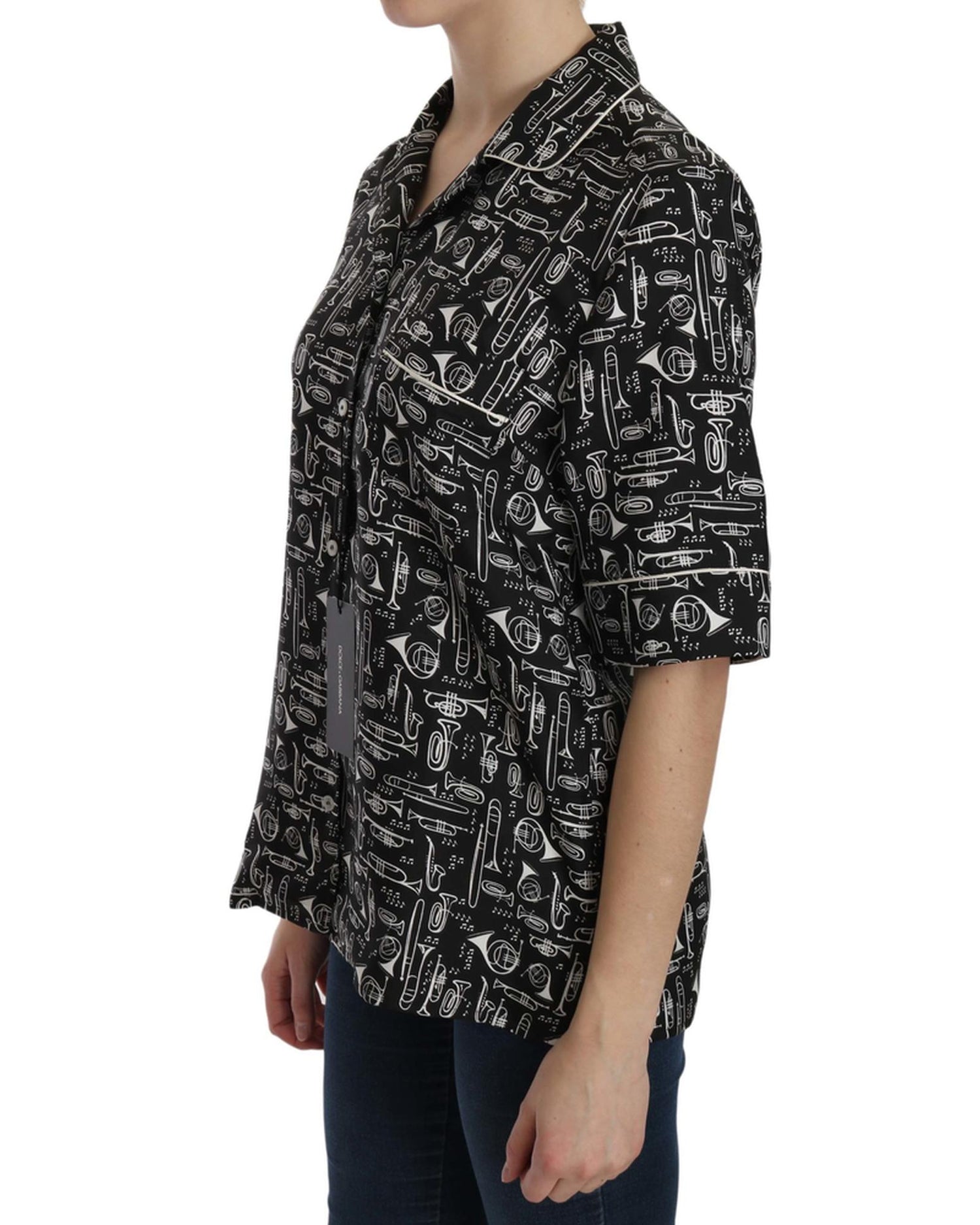 Step into the spotlight with the Dolce & Gabbana Musical Instrument Print Silk Collared Top, a perfect blend of sophistication and art. This top is not just a piece of clothing; it's a statement of style and passion for music.