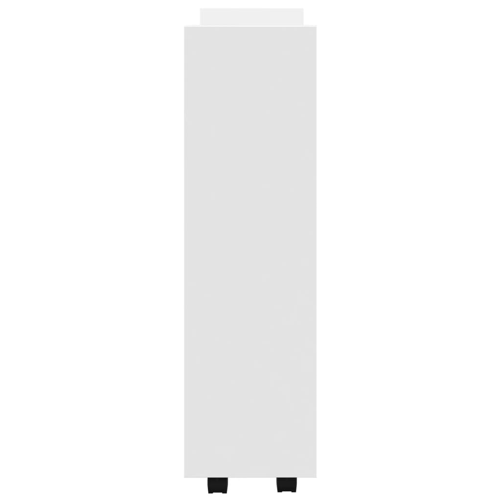 This narrow storage trolley is meant to be a decorative and practical addition to your home. Stable and durable material: Engineered wood is a durable and stable material with a smooth surface that is resistant to moisture, warping, and splitting, making it a reliable choice for a variety of projects.Ample storage space: The slim storage trolley provides ample storage space for keeping your various daily essentials well organised and within easy reach.Easy to move: This rolling cart, with the included four swivel wheels, can be easily moved to the desired place. The two wheels are lockable, which keeps the cabinet in position and adds stability.Wide applications: Depending on your needs, you can use this storage trolley in the living room, kitchen, or bathroom thanks to its narrow shape, even in small spaces.