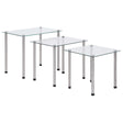Instantly add an impressive modern touch to your living space with these contemporary and practical nesting tables! Made of thick tempered glass and stainless steel legs, this set of 3 nesting tables is exceedingly sturdy and safe. The tabletop can accommodate books, magazines, fruit baskets or other small items you'd like to keep within reach. The smooth surface is easy to clean with only a damp cloth. You can stagger or separate the tables to meet your multiple needs, and nest them together to save space when not in use.