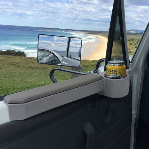 These arm rest cups holders fit the 70 series Toyota Land-cruiser, they accommodate both large and small diameter cups/bottles snugly with a removable rubber seal.