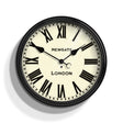 Newgate Battersby Clock Black - Black Roman Numeral Wall Clock | Classic Station Clock. A large railway station wall clock with a classic Roman numeral dial and gloss black metal case.