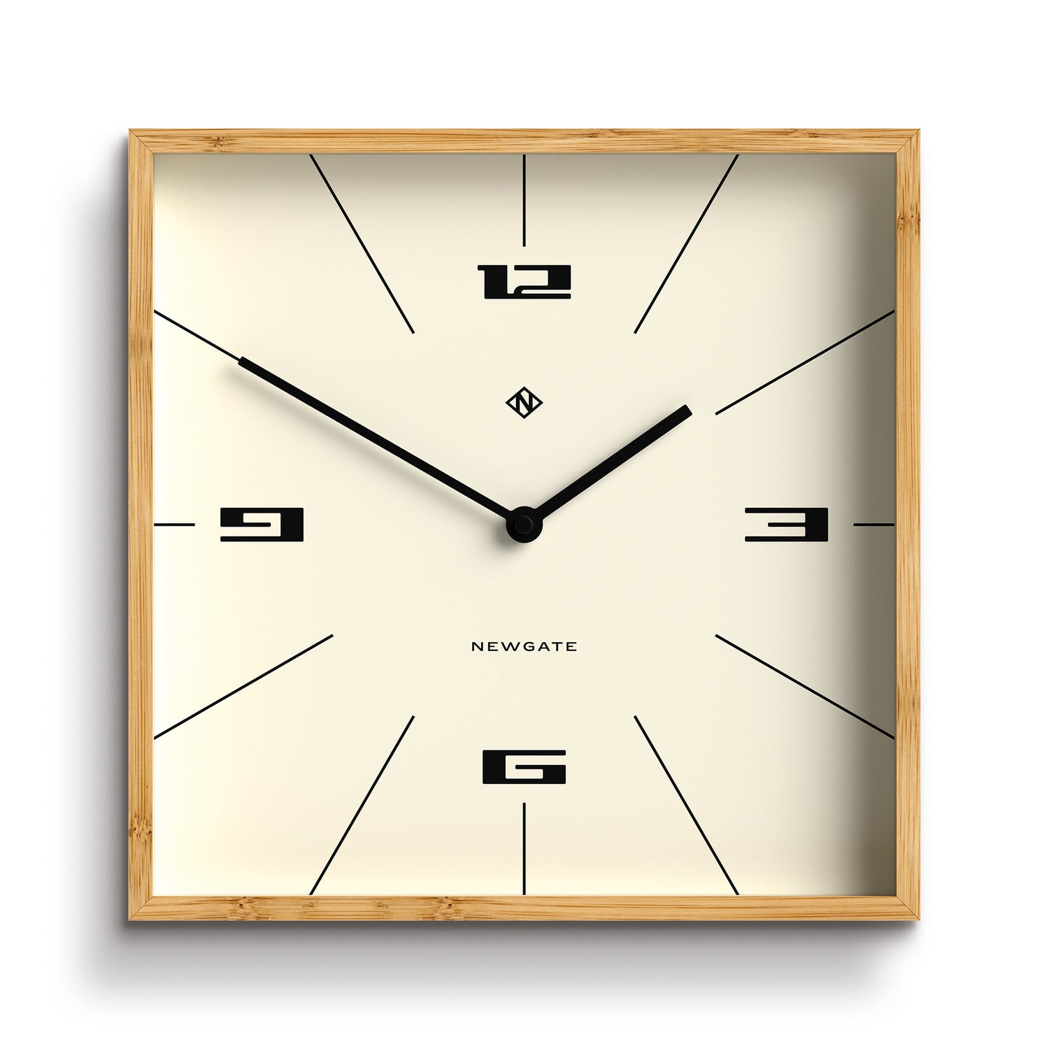 Newgate Fiji Wall Clock - Hovercraft Dial A modern square wall clock with a bamboo case and a minimalist Scandi-inspired design combining functionality with beauty. This case comes with three dial options.