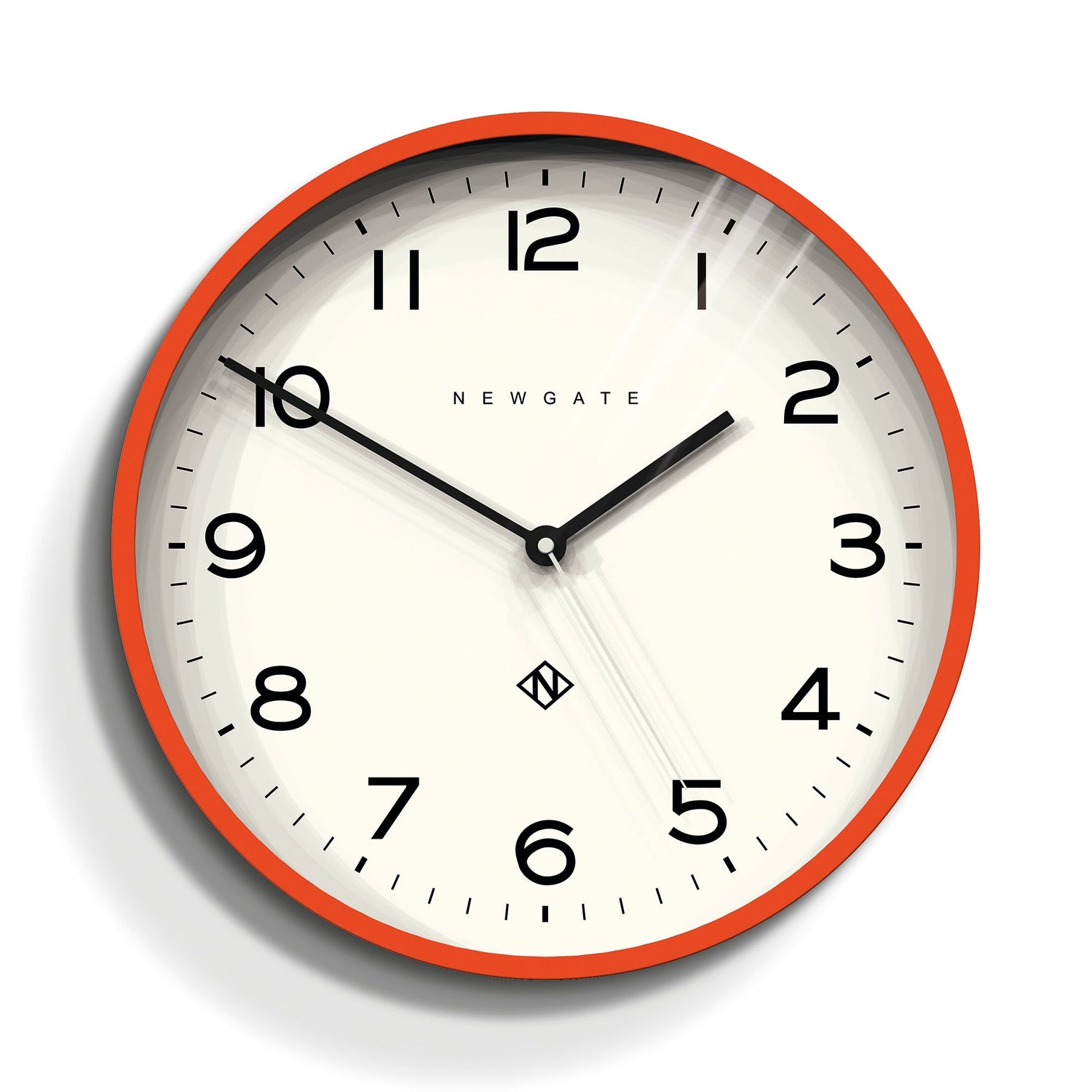 Newgate Number Three Echo Clock Silicone Orange A bright orange wall clock with a modern graphic dial and a minimalist straight-cut case.
