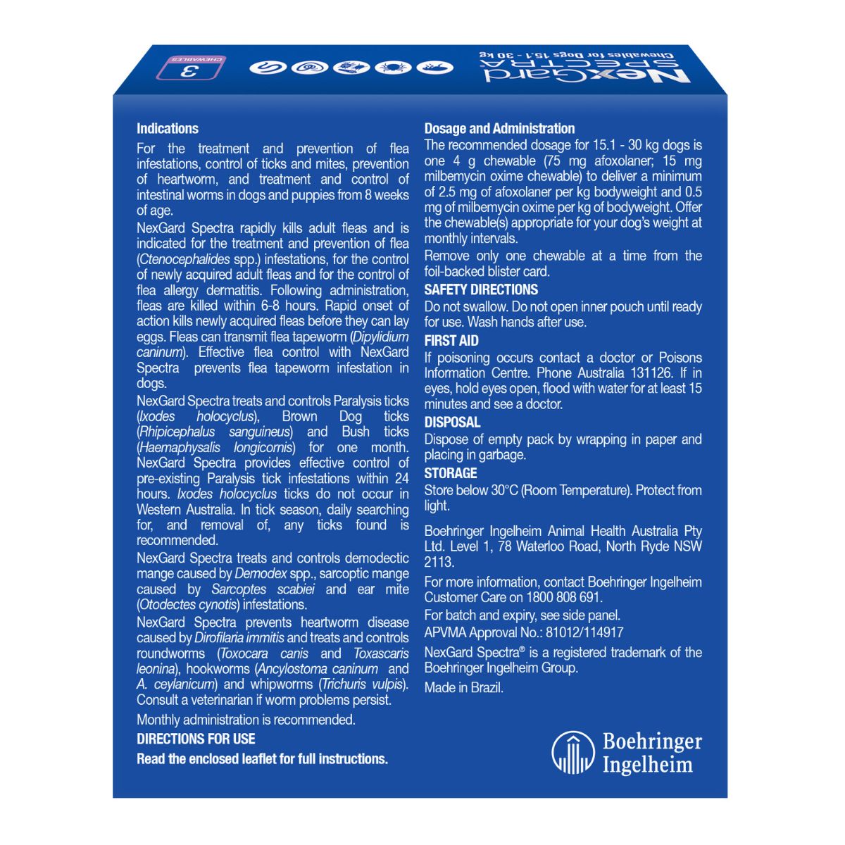 - 1x NexGard Spectra Dogs 15.1-30kg 3pk