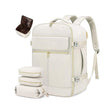 Off White 40L Large Capacity Travel Business Backpack with Expandable Compartments, Including 2 Toiletry Bags and Shoe Bag - Durable Oxford Fabric