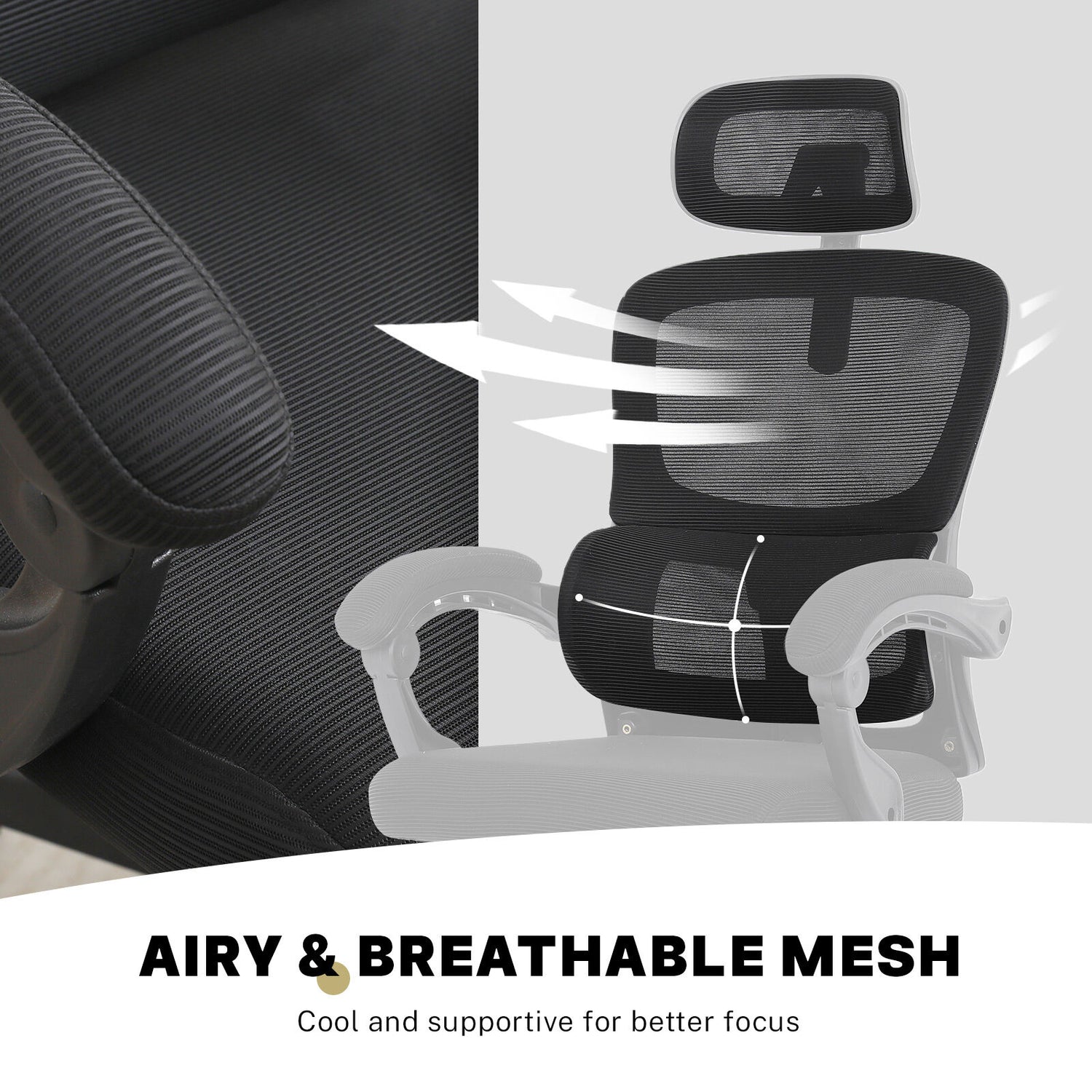 The Veltra Ergonomic office chair offers a balance of comfort and quiet support. The breathable mesh helps keep things cool, while the built-in lumbar support encourages a more natural posture. An adjustable headrest adds support during longer stretches, and the padded armrests give your arms a soft place to rest.