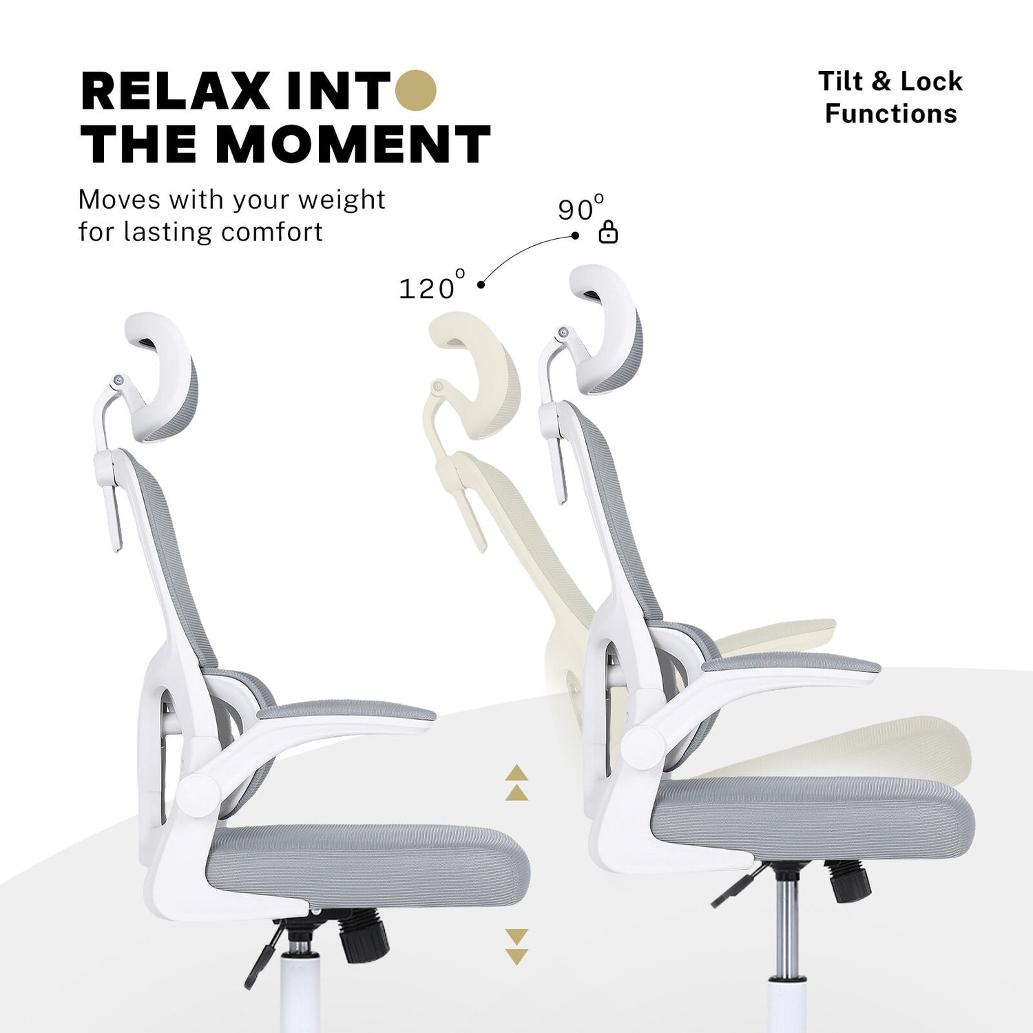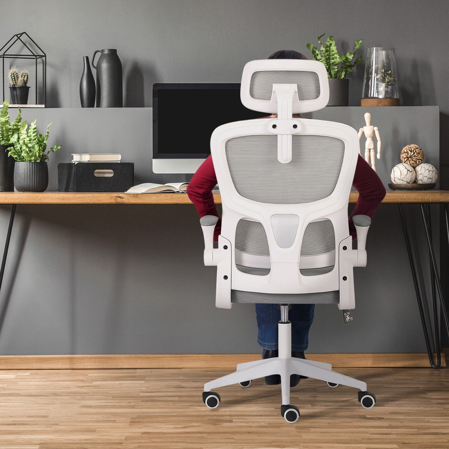 The office chair is designed to do just that. It quietly boosts your comfort while blending into your workspace. The breathable backrest keeps things cool, the built-in lumbar support has your back, literally. An adjustable headrest adds support when you lean in or sit back, while the flip-up arms give you more room when needed and let you tuck the chair neatly under your desk once the day is done.