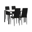 Better still, the particle board dining table comes in a white marble-like finish with a black frame and legs to suit your dining set-up preference. This 120cm long dining table with 4 cozy chairs is just the right size for a small family to enjoy their meals together.