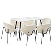 Immerse yourself in the epitome of modern elegance with our Dining Table and Sherpa Dining Chairs Set by Oikiture. The sleek lines of the contemporary dining table set the stage for a dining experience that seamlessly blends sophistication with comfort. Paired with our sumptuous Sherpa Dining Chairs, the set becomes a statement piece that captures attention and admiration.