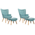 Oikiture 2x Armchair Lounge Chair Ottoman Fabric Sofa Blue