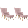 Oikiture 2x Armchair Lounge Chair Ottoman Fabric Sofa Pink