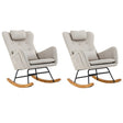Our rocking armchair is upholstered in high-quality faux linen fabric that emulates the look and feel of traditional linen while being easy to maintain. The soft and durable fabric adds a touch of sophistication to your home. Sink into the plush, generously padded seat and backrest, and enjoy a comfortable and supportive seating experience. The included headrest and bolster pillow cradle your head and lower back, providing added comfort and relaxation as you rock gently.