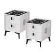 Oikiture 2x Smart Bedside Tables Wireless Charging LED 2 Drawers White