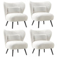 Oikiture 4x Armchair with Lumbar Pillow Wingback Boucle White
