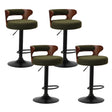 Oikiture 4x Bar Stools Gas Lift Swivel Chairs Wooden Boucle Green