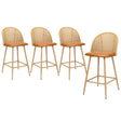 Oikiture 4x Bar Stools Rattan Dining Chair Natural PU Brown