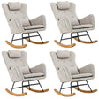 Oikiture 4x Rocking Chair Nursing Armchair Linen 2 Pillow Beige