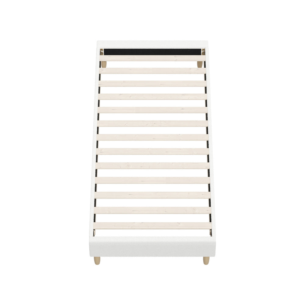 And true to its character, the bed frame finishing is meticulous with exacting workmanship all round. Inside, the thick 13mm reinforced wooden slats provide end-to-end support for the mattress while the sturdy legs (with central supports for the Double, Queen and King sizes) and heavy-duty fixings ensure that the bed frame stands up to durable use time and again.