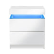 Oikiture Bedside Table RGB LED 2 Drawers White