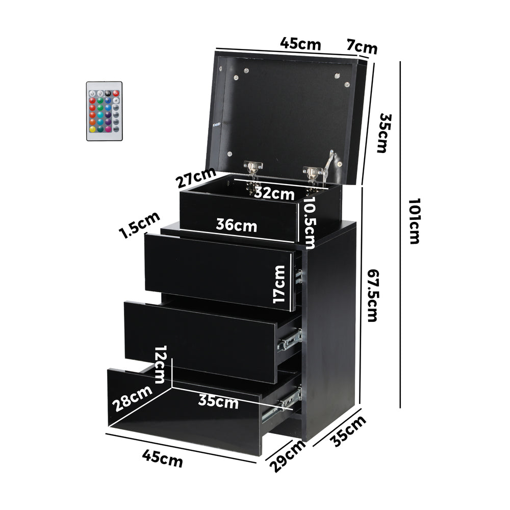 But wha's really astounding about this bedside table is the customisable LED lighting with 16 colours and 4 flashing modes to create a spectacular lightshow or ambient lighting for perfect rest and relaxation. The bedside table can even be a showcase for your treasured mementos or collectibles with display lighting. Everything is easily set with a handy App downloaded to your mobile device for hassle-free adjustments.Plus, a useful USB port is also built-in for convenient charging or powering of your favourite media devices.