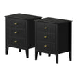 In terms of style, the bedside table has all the vibes of a cottage-inspired piece that stands out from the ordinary. With character and presence to add a rustic touch to your decor. The triple drawers, with stripe textured fronts, are blessed with ample space whilst the auric-hue brass handles make for easy opening and closing besides their aesthetic qualities.