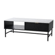Structurally, the 15mm MDF composite construction and black powder-coated metal frame render the coffee table stable and sturdy even with constant robust use. Having all your coffee table leisure and entertainment elements close at hand is facilitated by the cavernous drawer with a classy aluminium alloy handle and an equally spacious open shelf at its side. On top, the vast faux marble surface also lends itself to hosting several coffee table accessories with ease. And that makes the functionality of this coffee table an absolute 10.