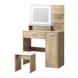 Oikiture Dressing Table Stool Set LED Light Large Cabinet Natural