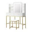 that are always within your easy reach. Plenty of bling too with the gold-plated iron mirror frame surround and aluminium handles to convey the Hollywood factor in every aspect of the dressing table. Not least, a comfortable cushioned stool completes the set for a tribute to stardom with your well-storied lifestyle. Order your Oikiture Dressing Set today and mirror the famous with a brilliant countenance.