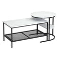 Comprising both a rectangular and a round coffee table, this twosome can be used separately or together. Certainly more options for you when you need extra table top space whenever the situation requires it.